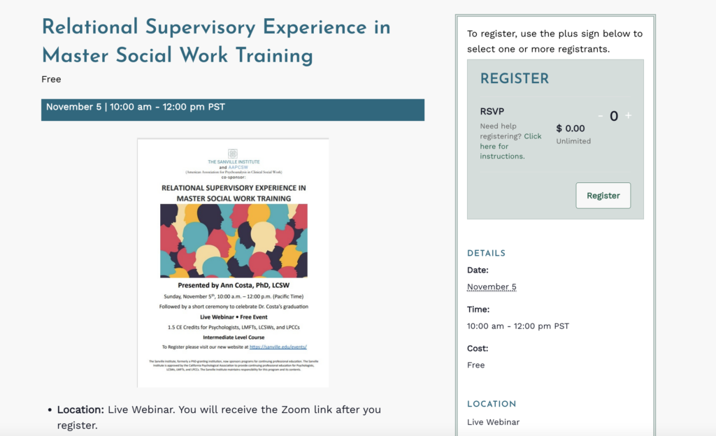 Previously, the institute operated a state-approved graduate school in California, offering a PhD in clinical social work. After terminating its academic program and transitioning to focus on professional development and doctoral-level research, the Sanville Institute needed an updated website to reflect their new mission.